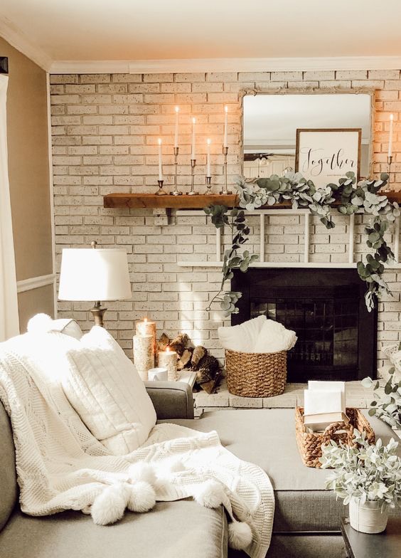 Your shelf is the perfect place to arrange all your small items, you can place a nice tree or plant pot on your fire place, whichever one you decide would be perfect for you. Wicker basket is also a good way to preserve that lovely traditional look.