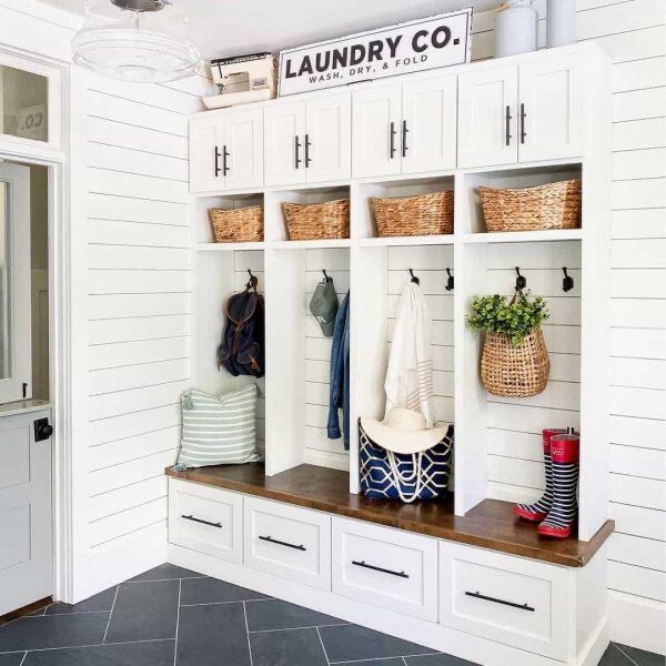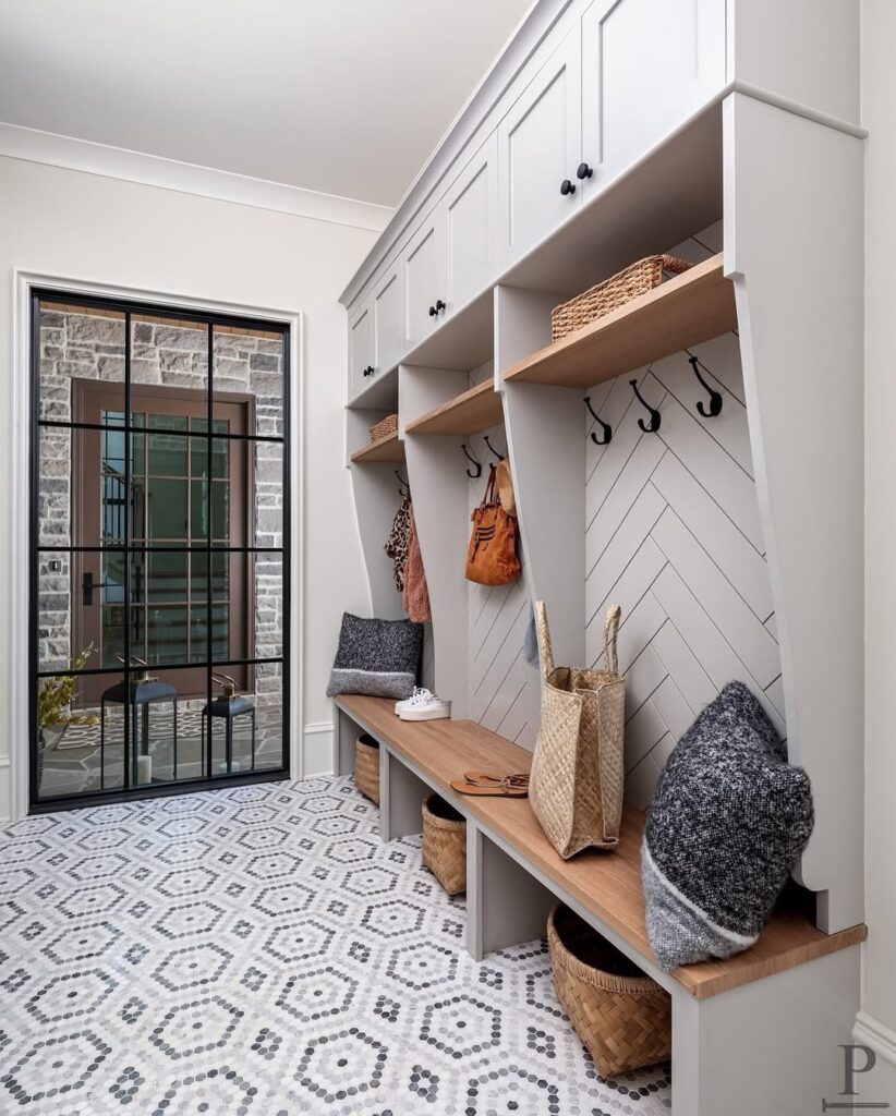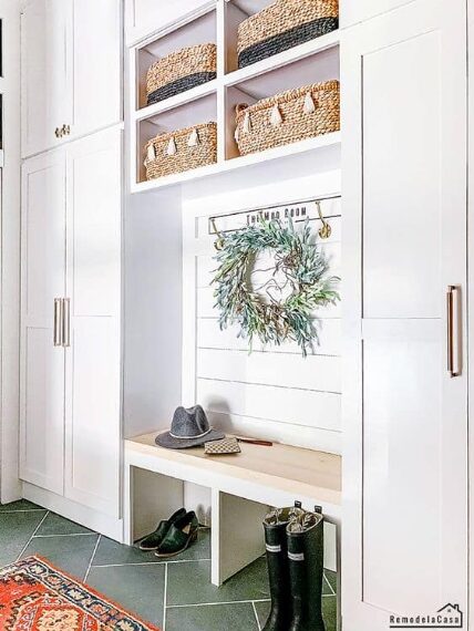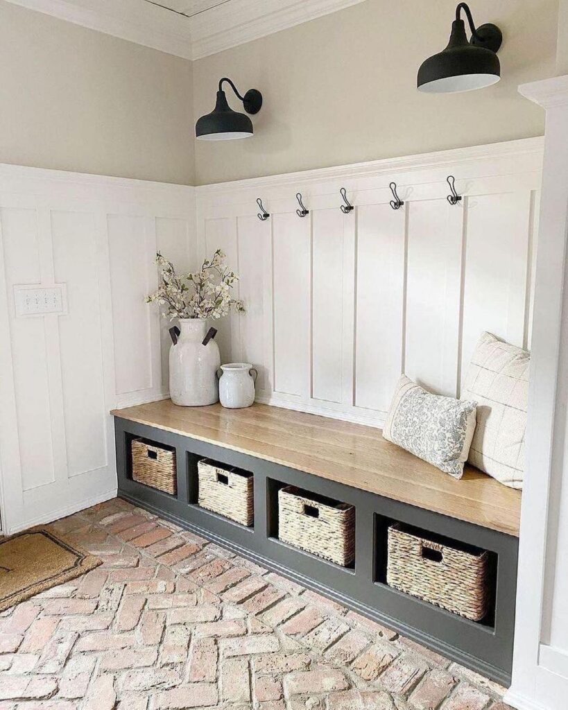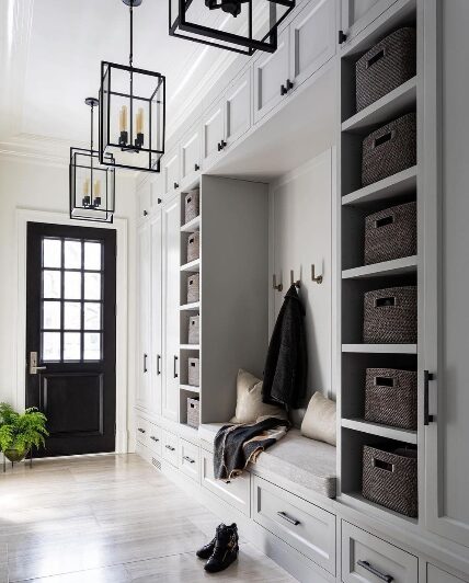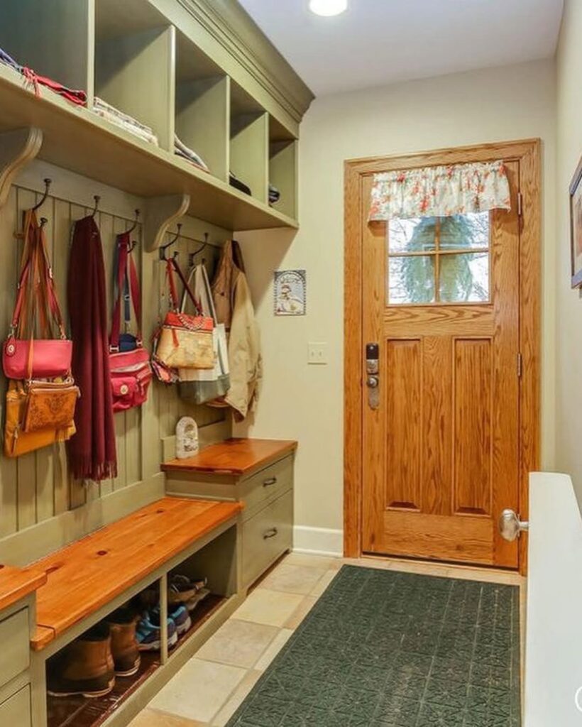 I’ve been seeing this trend of placing pillows in the mudroom, it has to be for the decorative purpose because there’s no way anyone plans to sleep on their entryway. If you love the pillow trend then you’re free to give it a try.