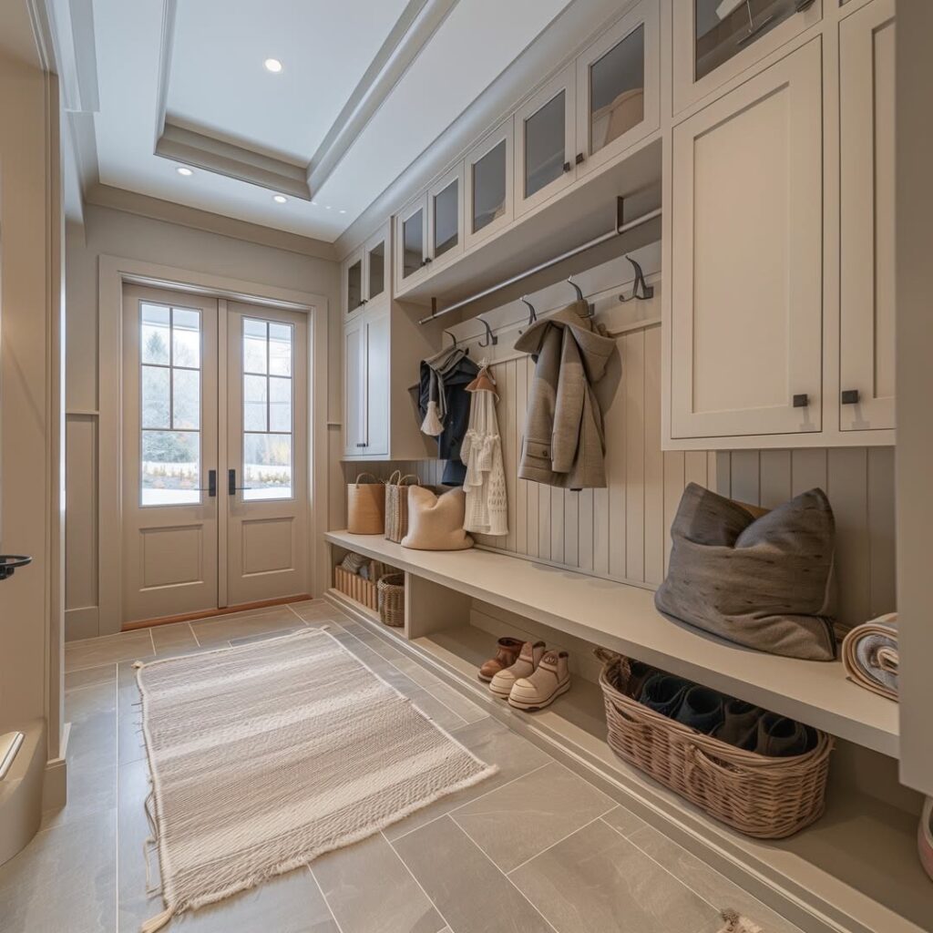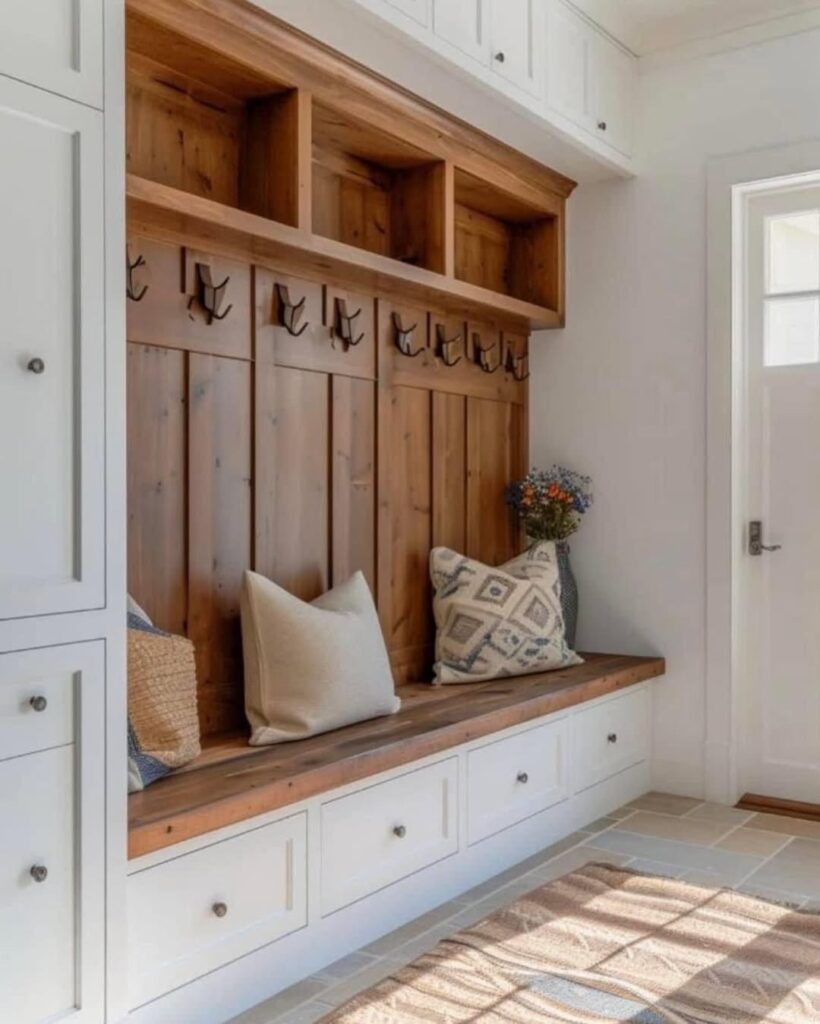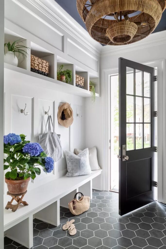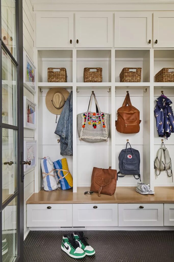 I’ve been seeing this trend of placing pillows in the mudroom, it has to be for the decorative purpose because there’s no way anyone plans to sleep on their entryway. If you love the pillow trend then you’re free to give it a try.