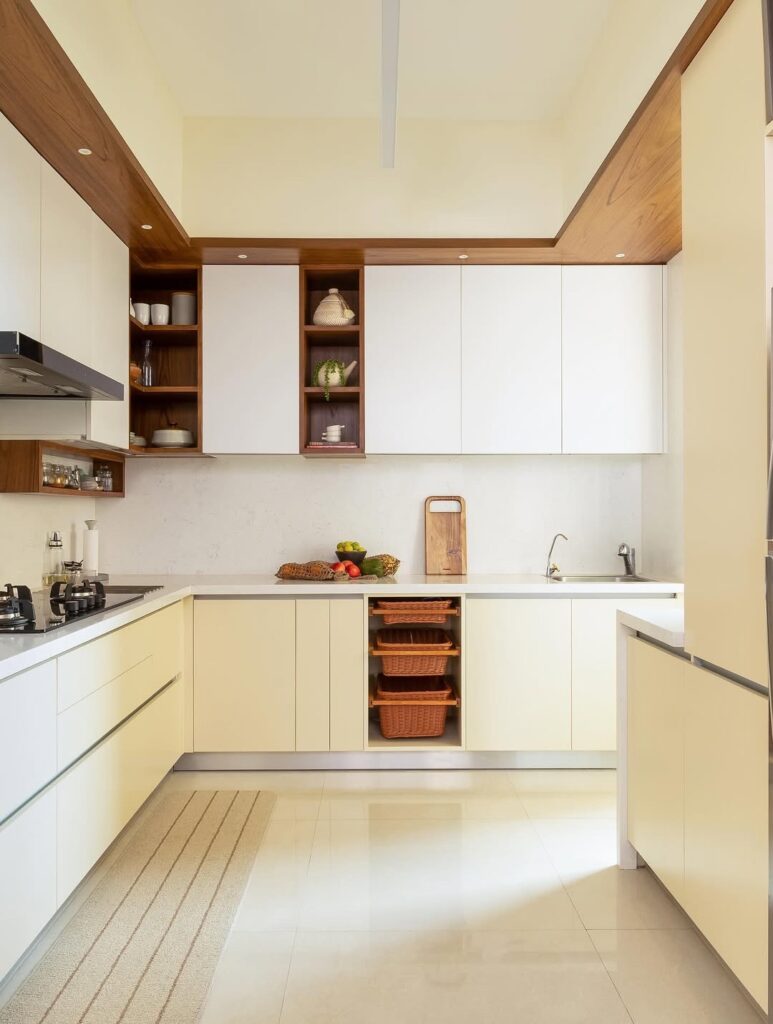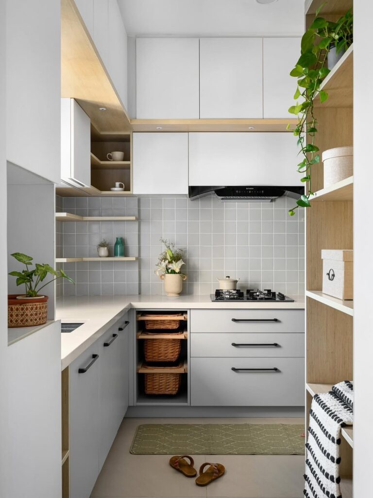 If you don’t want to place too much cupboard like the previous one, then you can opt for plank storage arrangement. You place different layers of plants on the wall and that’s where your small items will be placed. This is ideal for smaller spaces.