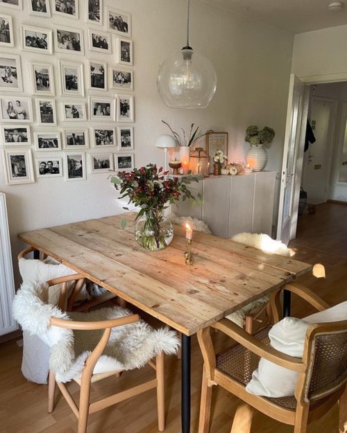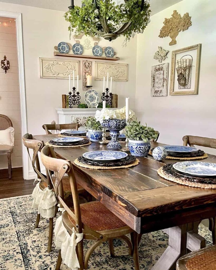 Most people set a special table to place their plant pots, wall art, and other items but they do it in entryways. I’ve never seen anyone make this arrangement for a dining room, you can adopt this style if you feel you need to do more decorations in this area.