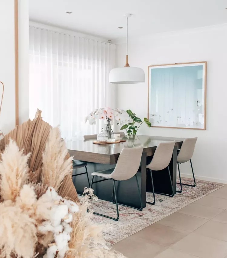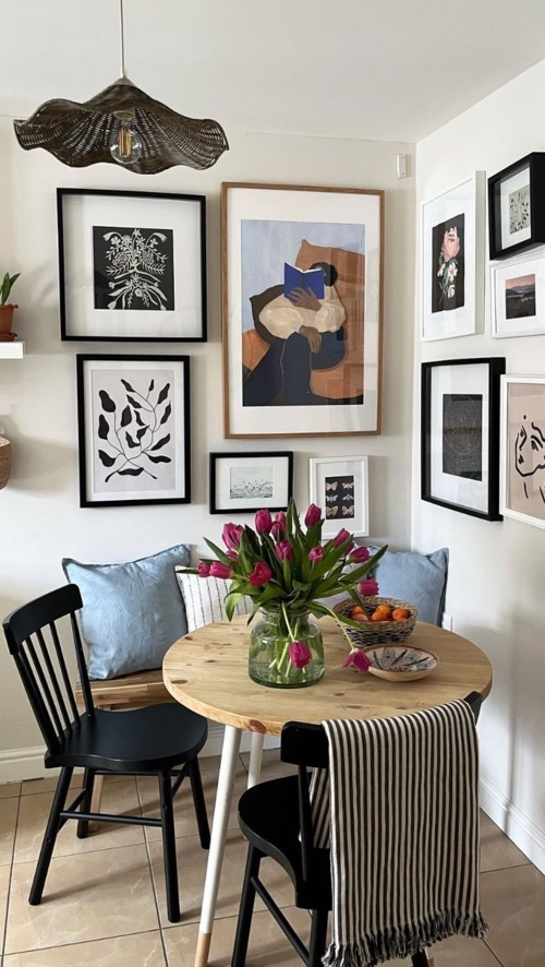 Sometimes, you only need a few items to achieve what you want. Set a separate place for your wall art and plant pot on the wall, this helps manage space. You only need the table to be long enough for six chairs if it’s a family house but if it’s not, you can go for a lesser length.