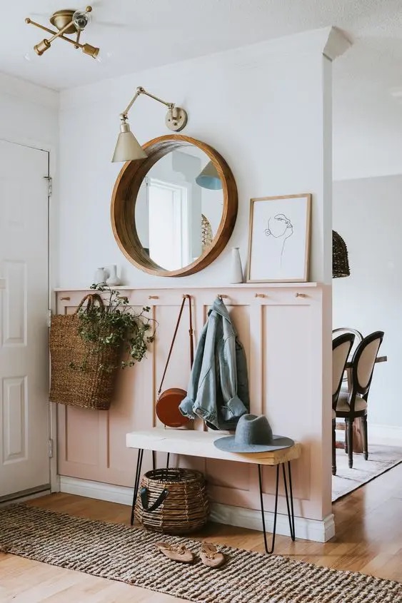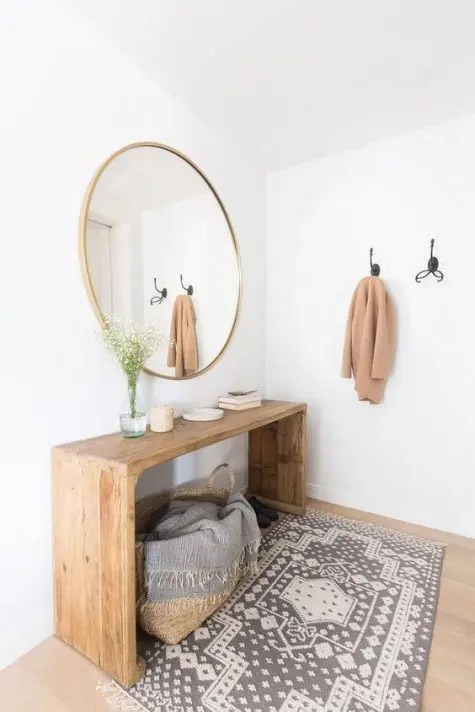 Rugs are not ideal but who says you can’t use them? Get a brown carpet that shares the same color as your plant pot, wicker basket, or other materials, this is to make that area unique. Mirrors are also welcome as most people are replacing wall art with mirrors.