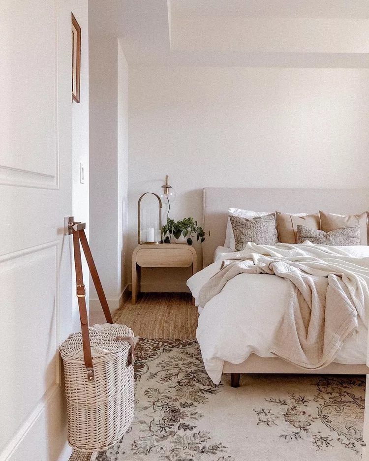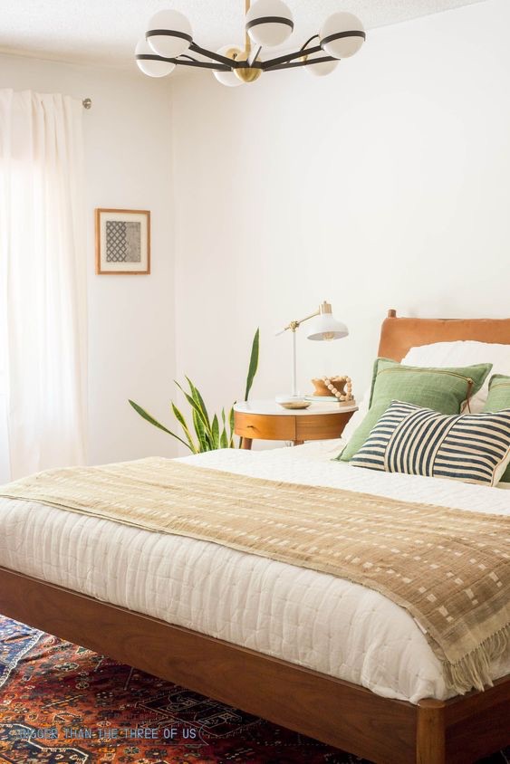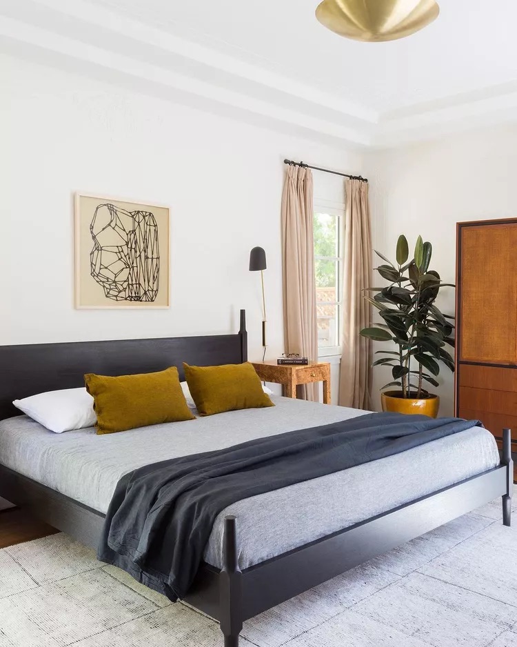 Opt for two identical nightstand, two plants that are very similar or look the same and place them on each side of the bed. This trick is what a lot of designers use to make their space look classy. As always, your center rug should have similar color as some other items.