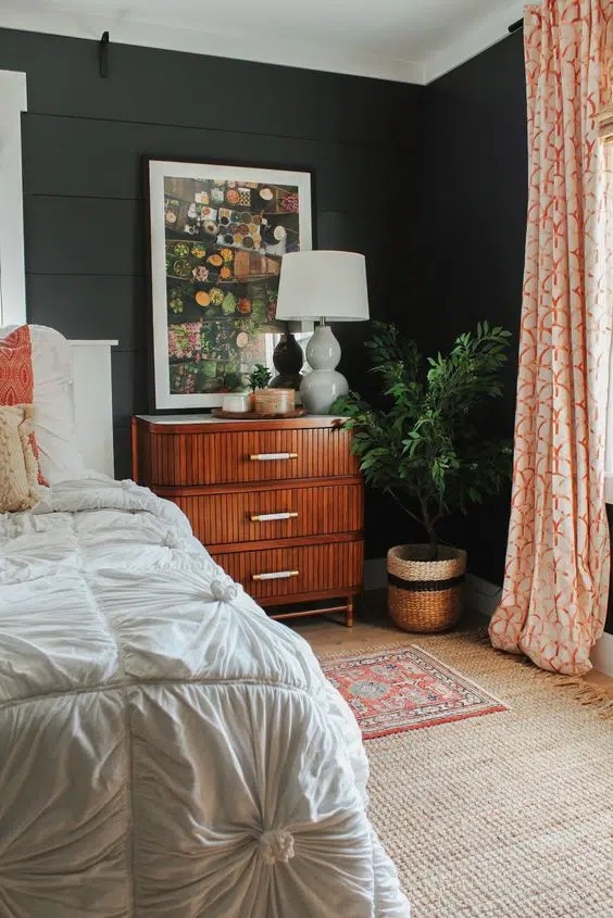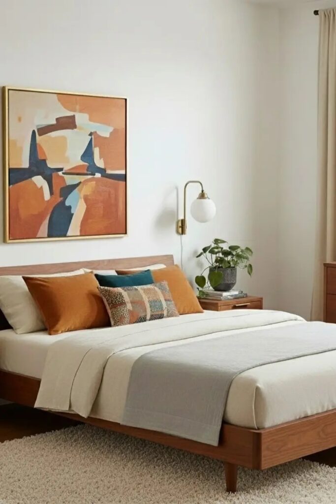 Wall art is as important as anything when you’re decorating and you’ll thank me later. If you love your wall art then opt for a wall art with a brown wooden frame so it matches the nightstand, this is another to make your design look unique.