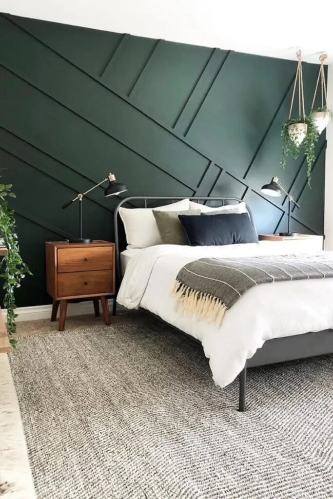 I’ve been seeing more people incorporate this wall design and I love it. The design doesn’t cover the whole wall in the room, just the one close to the bed. Plants used to be what you place on the table or on the floor but people are now bringing some new ideas.