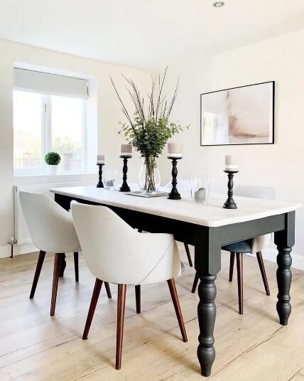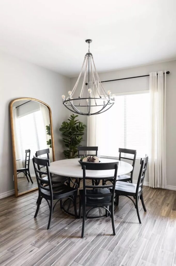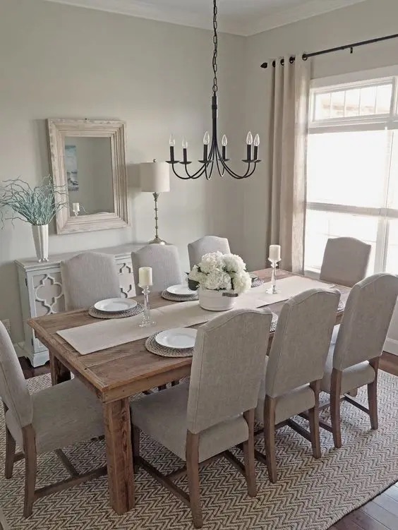 A farmhouse table would be nice if you’re looking to make that area of the house look very artistic. A grey color was picked here and it’s nice but I would have preferred white because it’s my best color. You can also use your best color in this design as there’s no restriction.