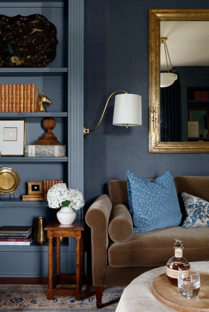 If you’re used to a moody setting then you’ll know that the color of the paint has probably the highest impact when it comes to the mood of your space. This dark blue color is what set the mood here and I love it, it looks smooth and very beautiful. It’s also better to have one of your couches share the same color as your wall paint.