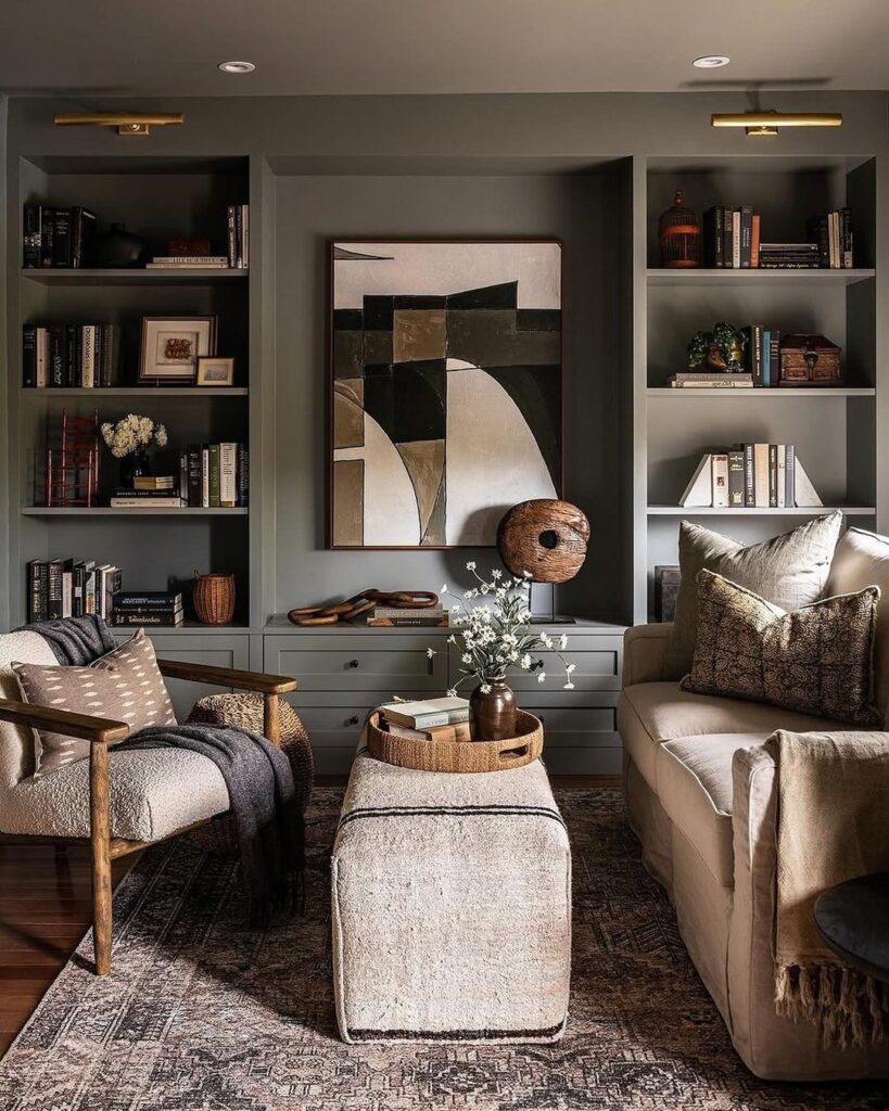 One of the most sort out designs when it comes to living rooms. Moody living room designs are probably the best when it comes to creating nice vibe. The dark setting is what stands out the most and that’s why most people want it.