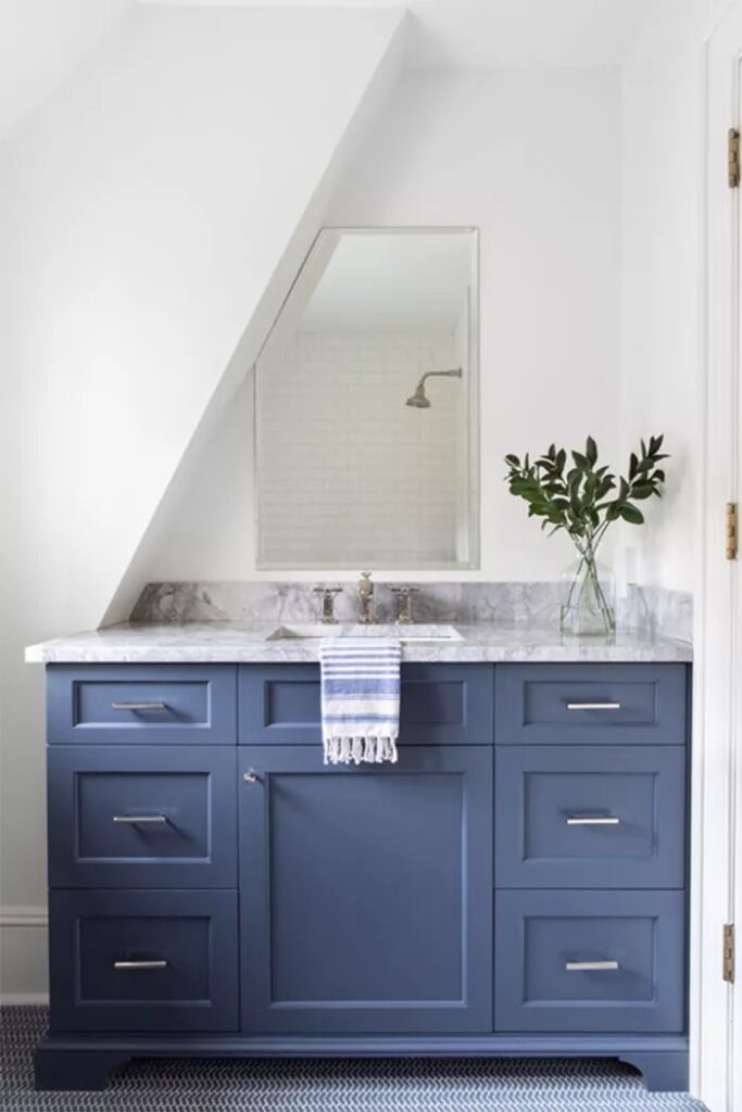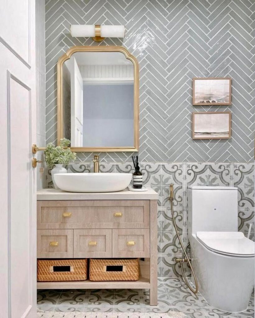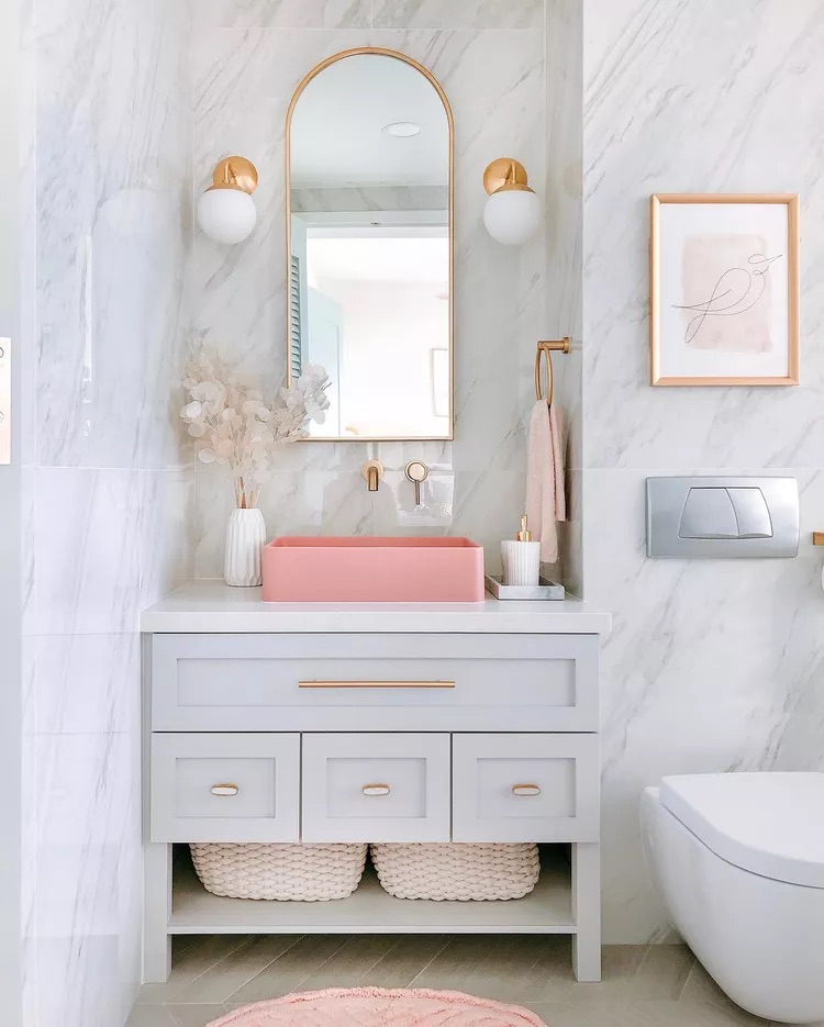 mirror is probably that things you will find in every. Bathroom and you’ll definitely love it, I like to place a gold frame around my mirror to make it look shiny from the side, this is an idea you’re going to love as it makes the mirror contribute to the design.