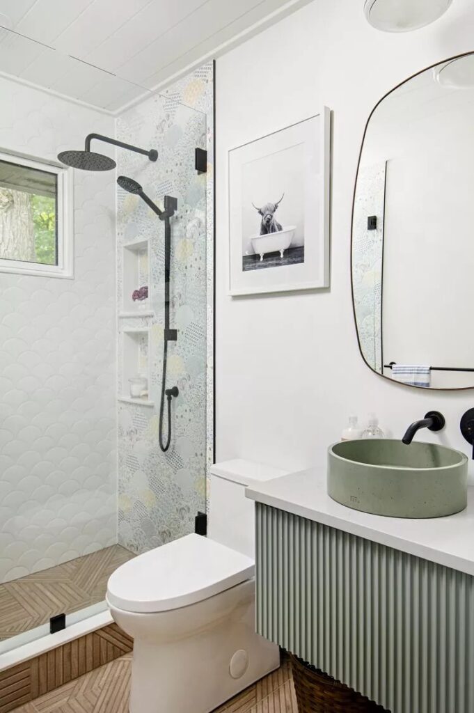 Having the same or similar wall tiles as your floor tiles is one of the most unique ideas and it’s something that’s so beautiful a lot of people have done it. This used to be something I’d do every time I was asked to give an ideas for decoration, it’s the most unique style.