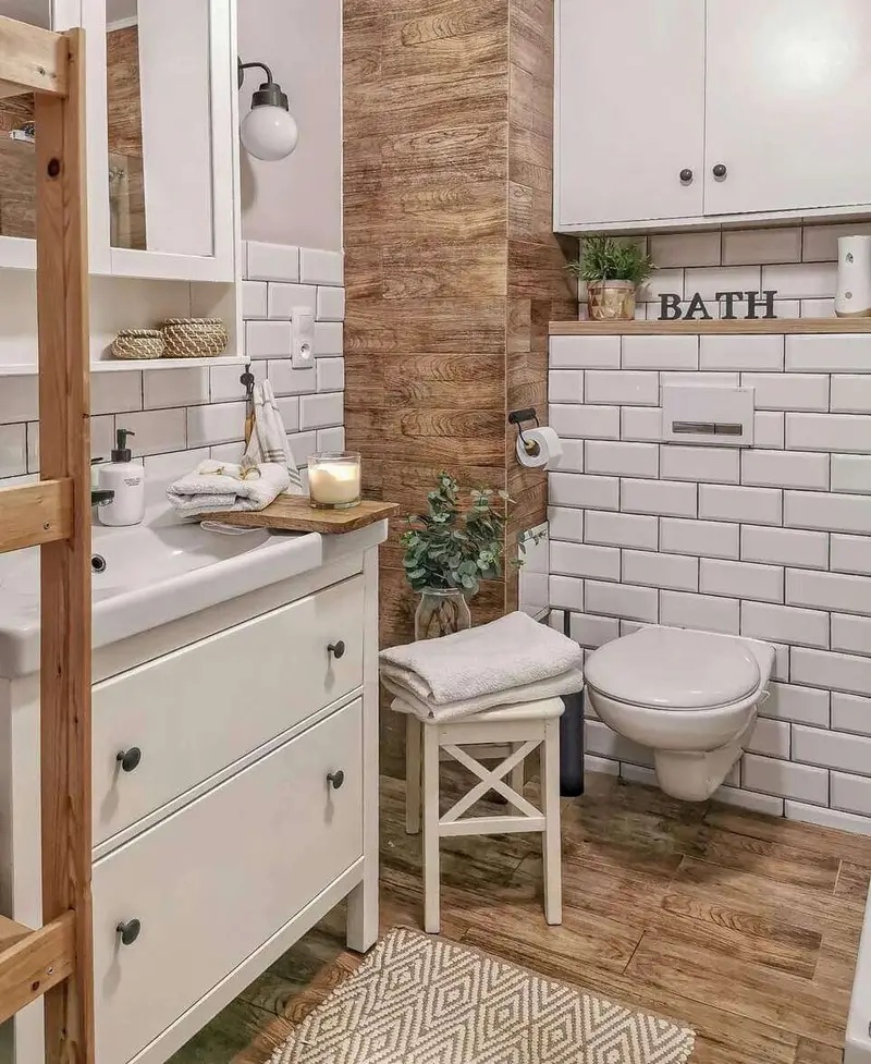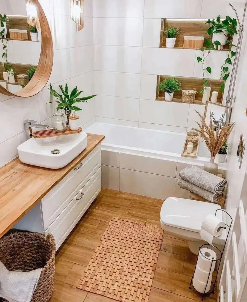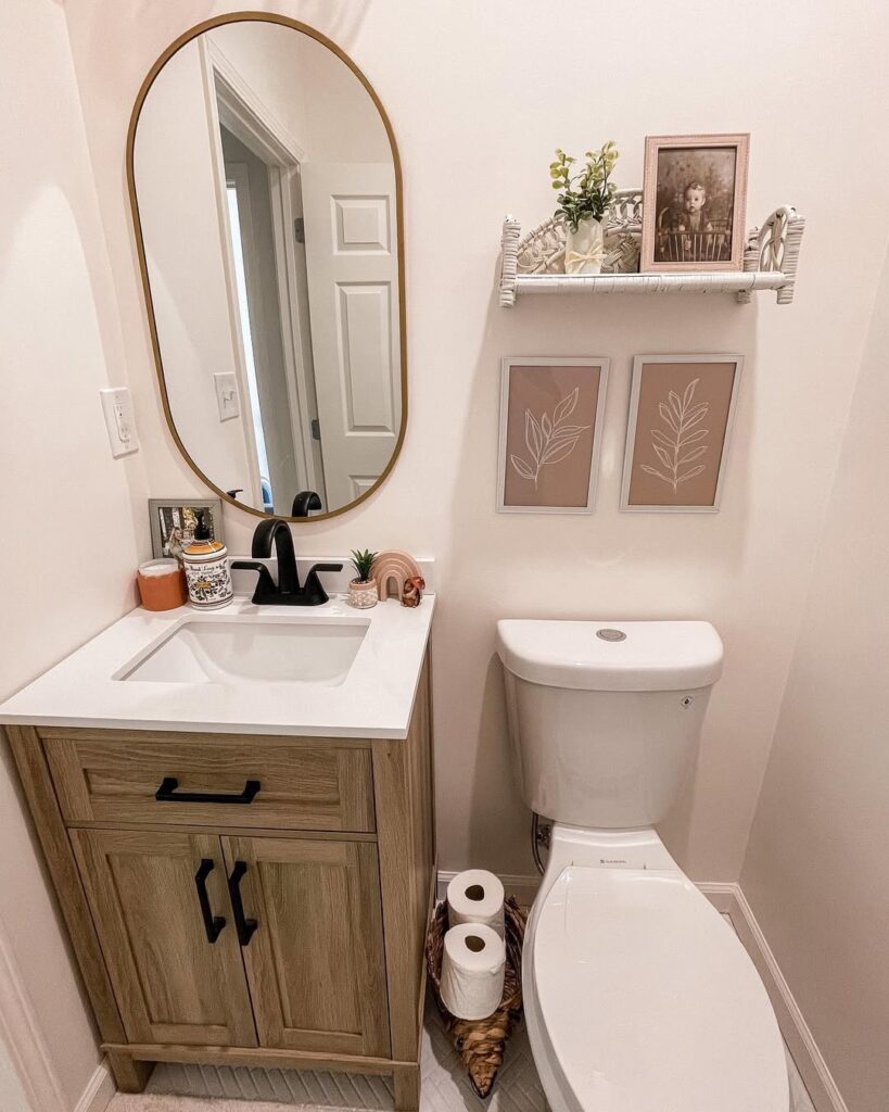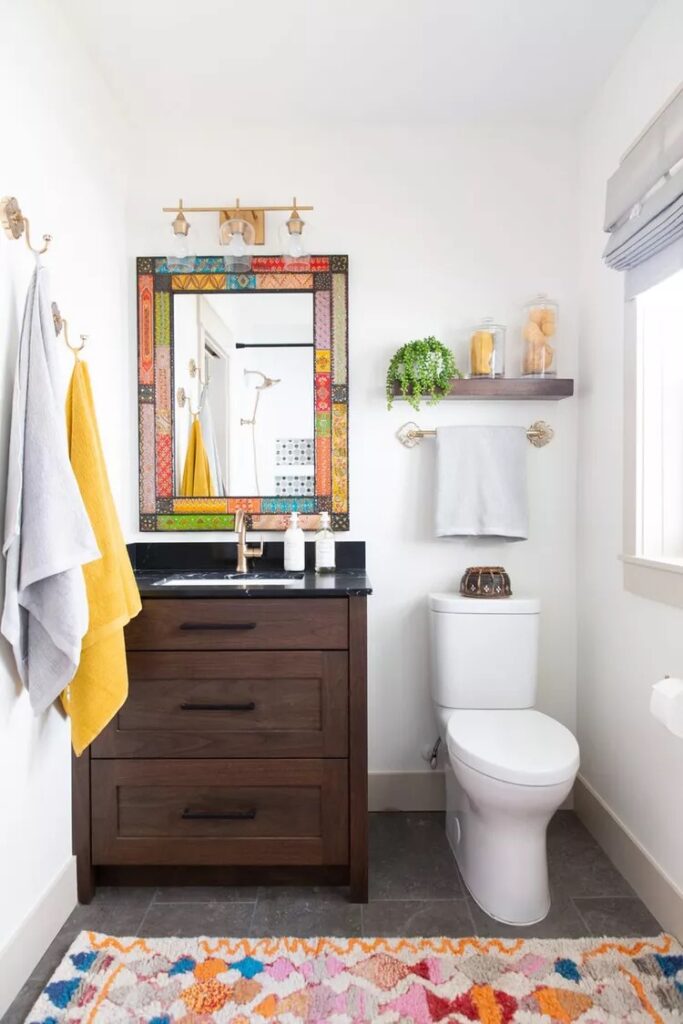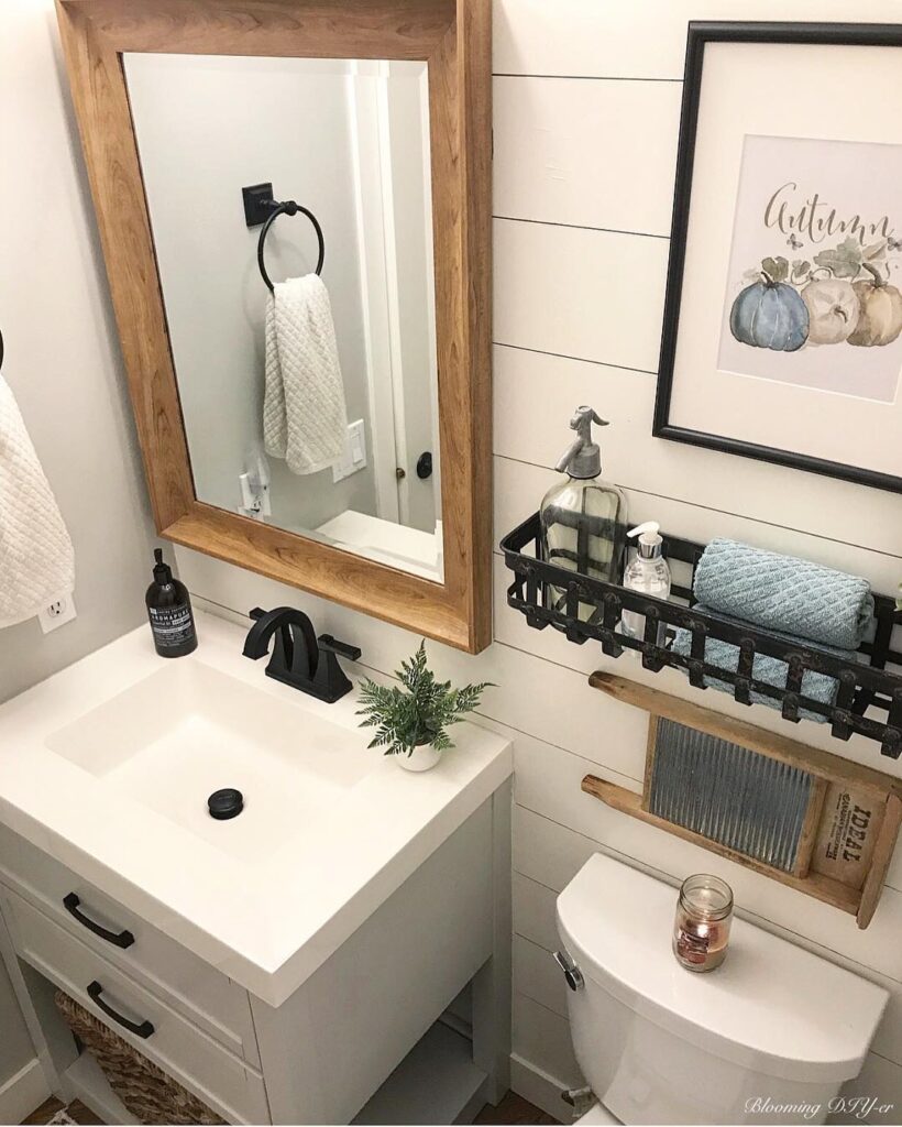 Make your mirror frame a gold or silver one to take it more shiny. Plants should be placed on the toilet or on the sink if you’ve not got space. I always recommend setting up a plank for smaller items but if you don’t like that idea then you can do this.