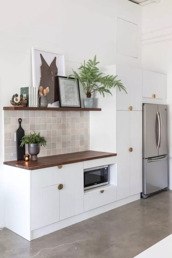 The idea of setting planks so your smaller utensils or items can placed is an ideas I’ve always loved. The best part is that I don’t only do it in this area but also in my living room and bedrooms. This ideas helps make your wall occupied while saving space also.